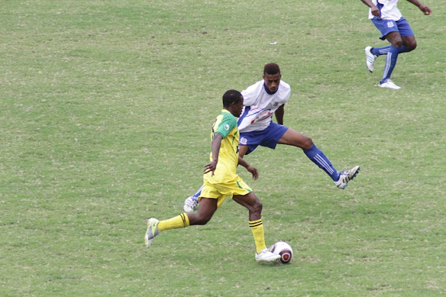 Rashid Gumbo wa Yanga, akimlamba chenga ya maudhi beki wa Azm.